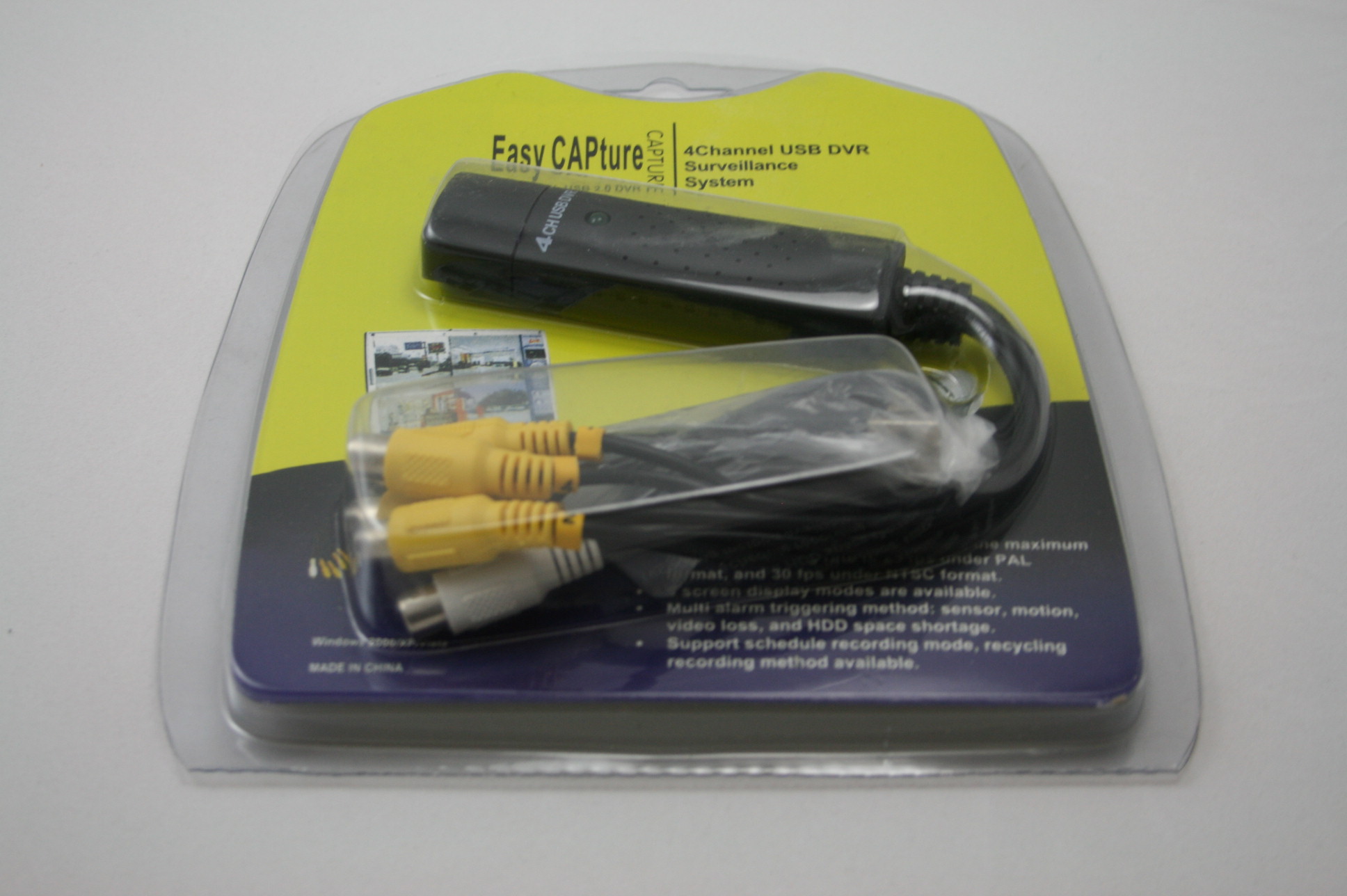 EasyCapture on nelikanvainen tallennin, jolla saat esim. neljästä videokamerasta kuvat suoraan tietokoneelle. Tietokoneella voit katsella kuvaa reaaliajassa, sekä tallentaa kuvat. Erinomainen esim. omakotitalon valvontajärjestelmälle tai pienyrityksen valvontaan. Helppo asennus, tällä tuotteella ei ole tarvetta kalleille ammattilaisille.