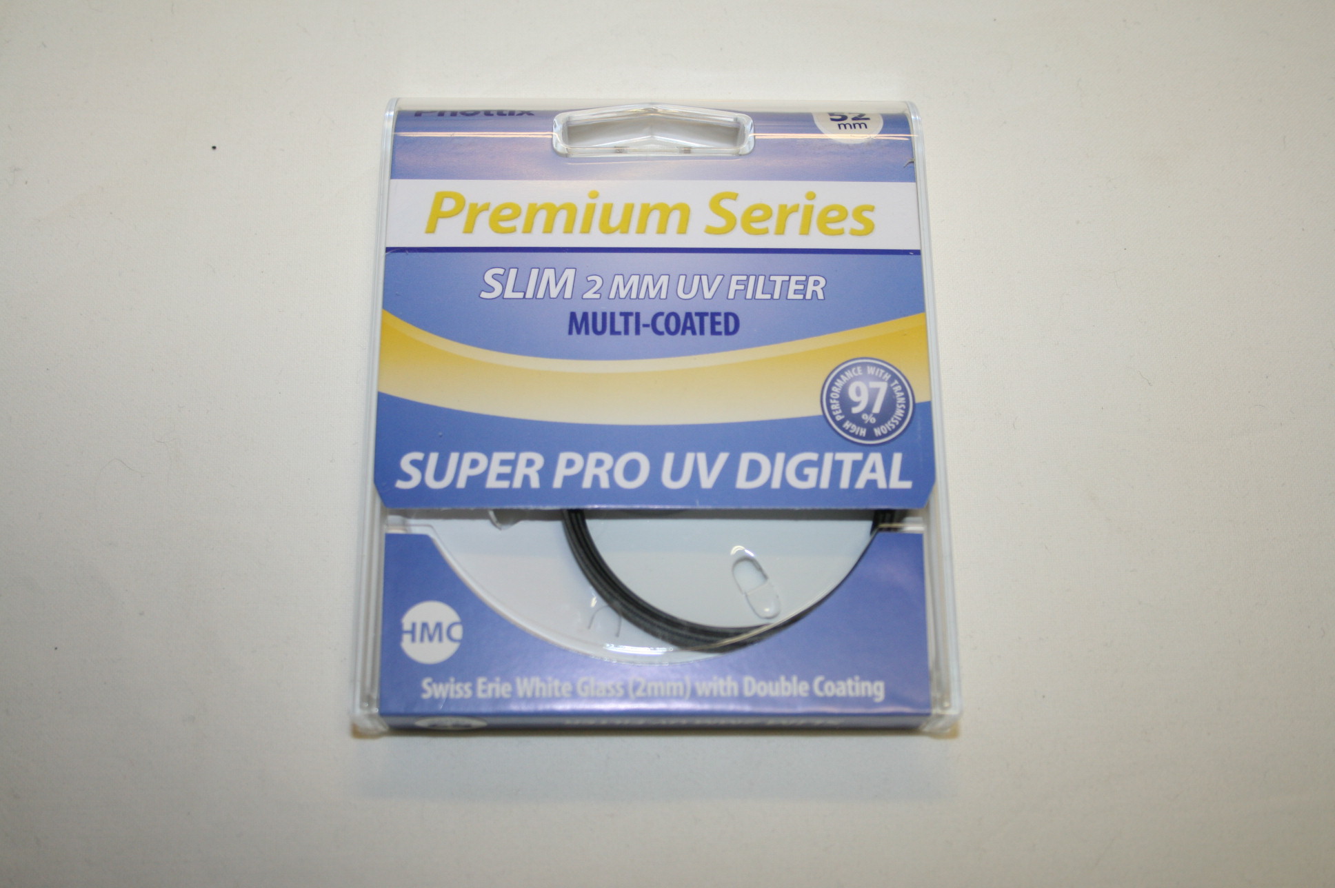 Phottixin Premium-sarjan todella laadukas UV-suodin. Kyseinen suodin on multicoated, elikkä sisältää monta UV-säteilyä heijastavaa kerrosta. Kuitenkin kaikki tämä on saatu mahtumaan vain 2mm paksuiseen lasikerrokseen. UV-suodin parantaa kuvan laatua kirkkaassa valossa, mutta on erityisen tärkeä myöskin kameran suojaamiseen sekä lialta että UV-säteilyltä. Objektiivin etulinssin pinnassa on heijastuksia estävä pinnoite, joka ei kestä hankaamista, likaa eikä myöskään UV-säteilyä. Suodinta on paljon helpompi ja halvempi vaihtaa kuin objektiivin vaihto.