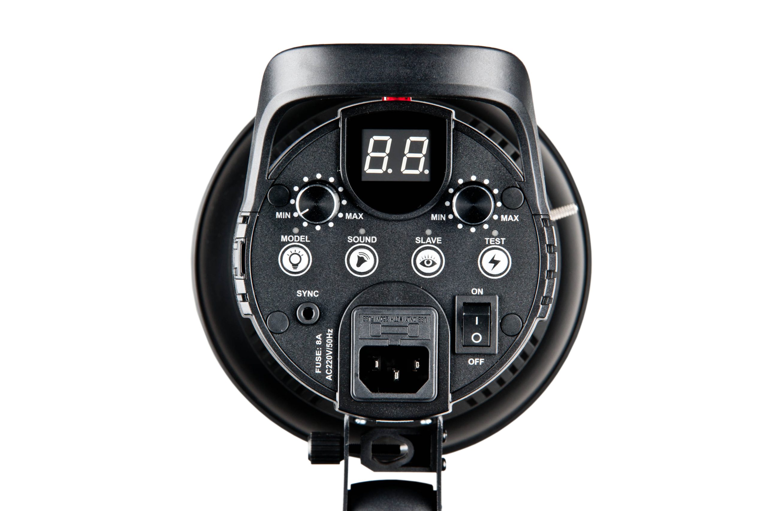– 2 kpl välähdyspää ja mallivalo (E27 Halogeeni, 150W)